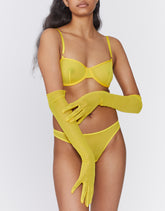 Eldivenimiz iç çamaşırlarımızla uyum sağlayabilmesi için aynı kumaştan; yumuşak, şeffaf ve nefes alabilen streç tülden yapılmıştır. Streç tülden yapıldığı için her bedene rahat şekilde uyar.